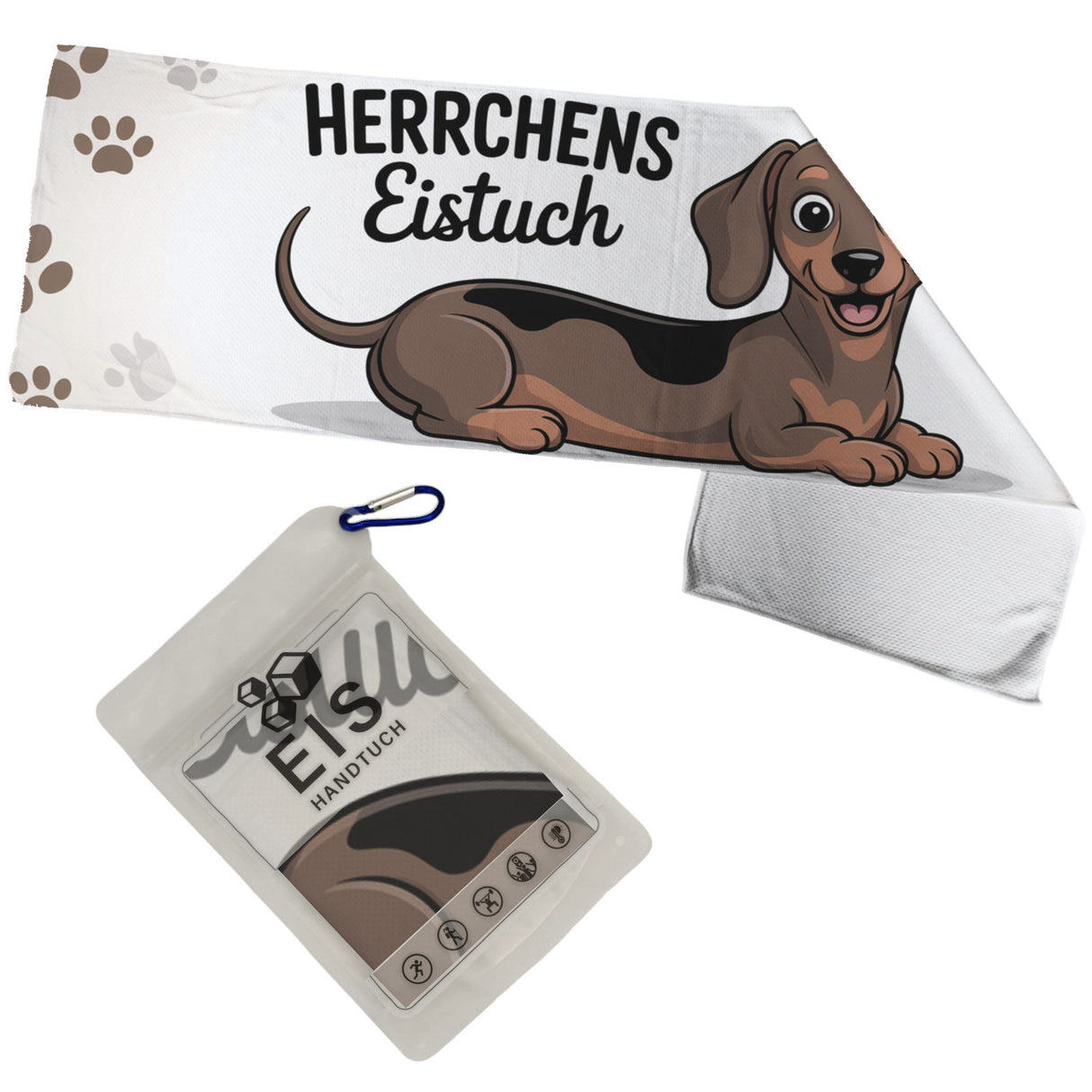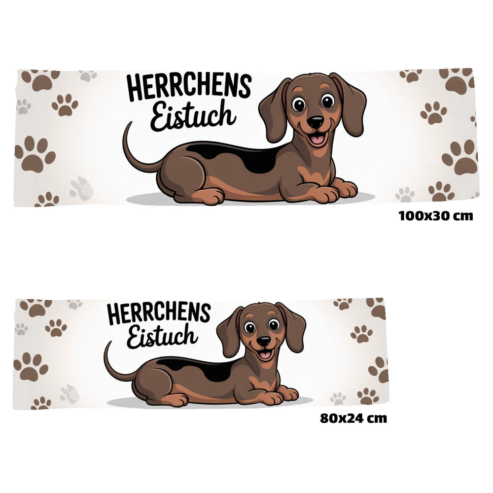 - 1x Herrchens Eistuch Dackel Pfoten Cartoon Eishandtuch in der gewählten Größe