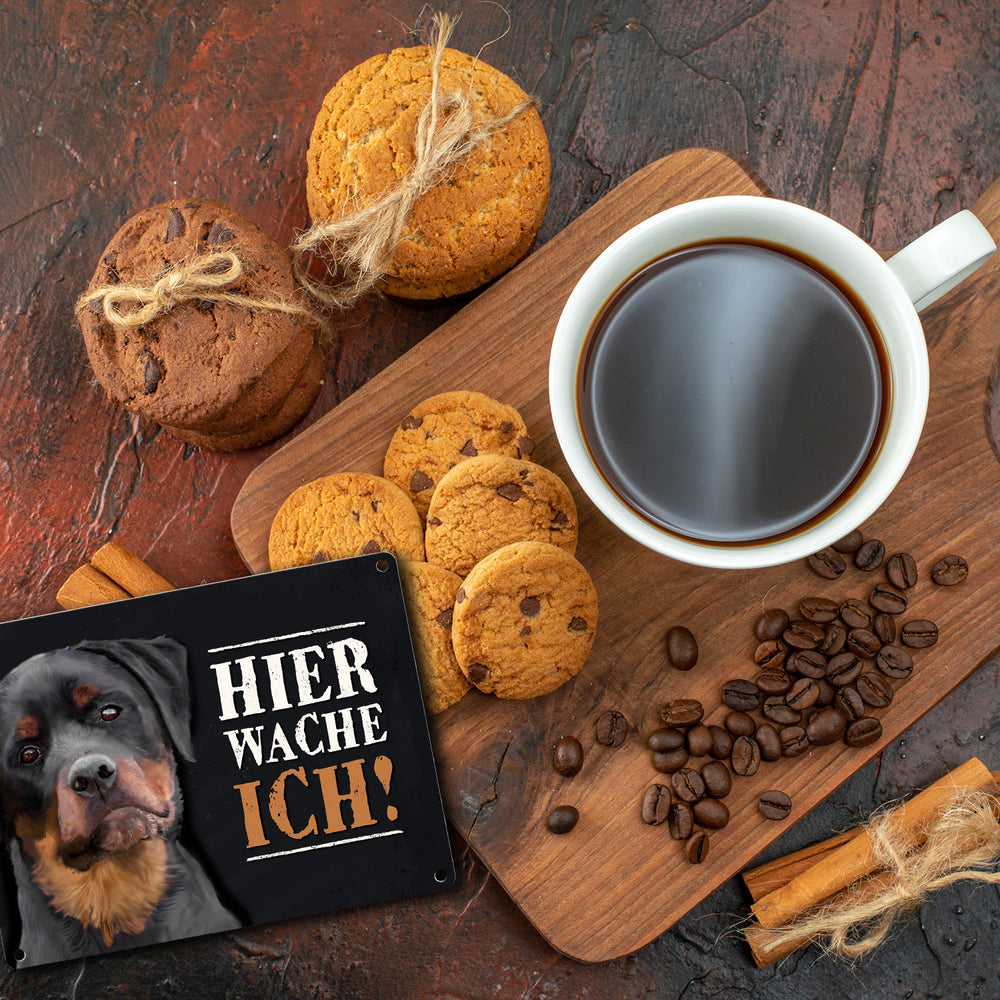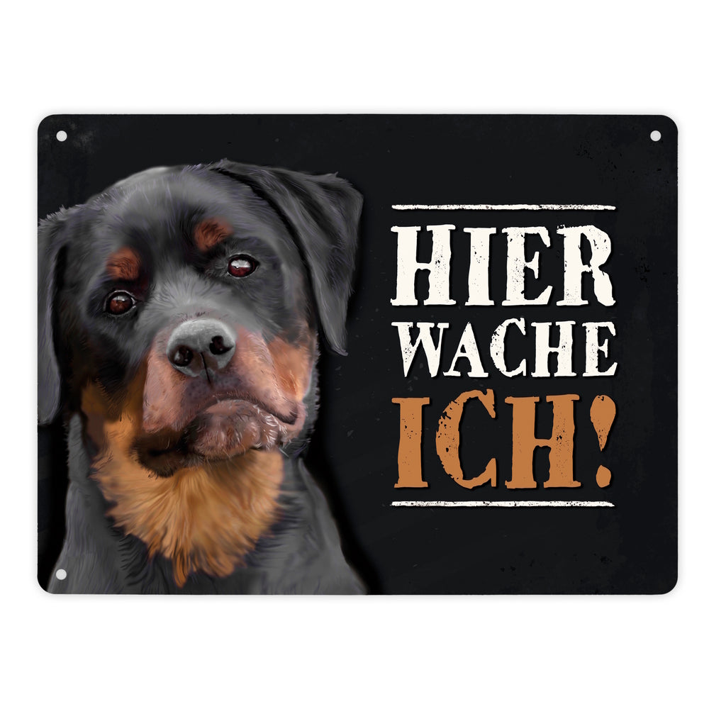 - 1x Hier wache ich! Rottweiler Metallschild in der gewählten Größe