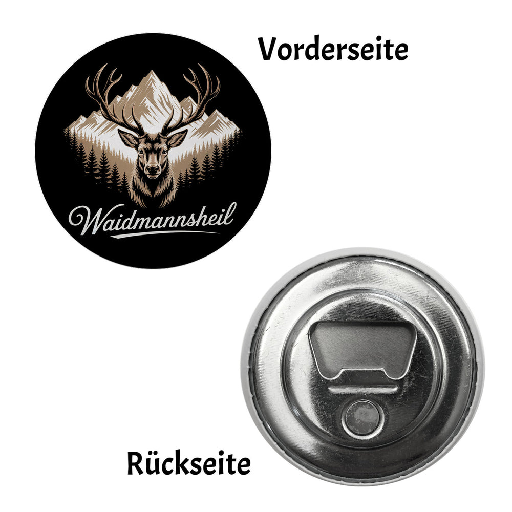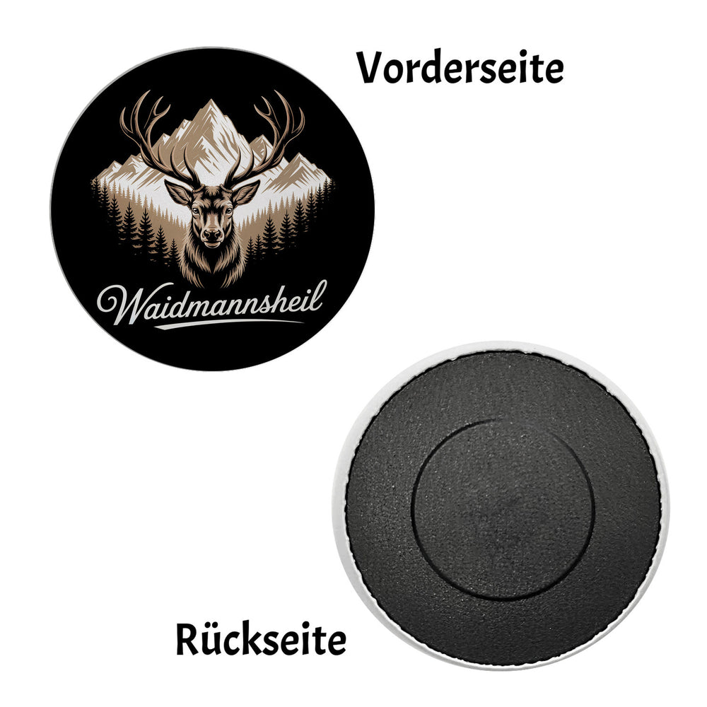 - 1x Hirsch vor Bergkulisse Waidmannsheil Magnet für Jäger in der gewählten Ausführung