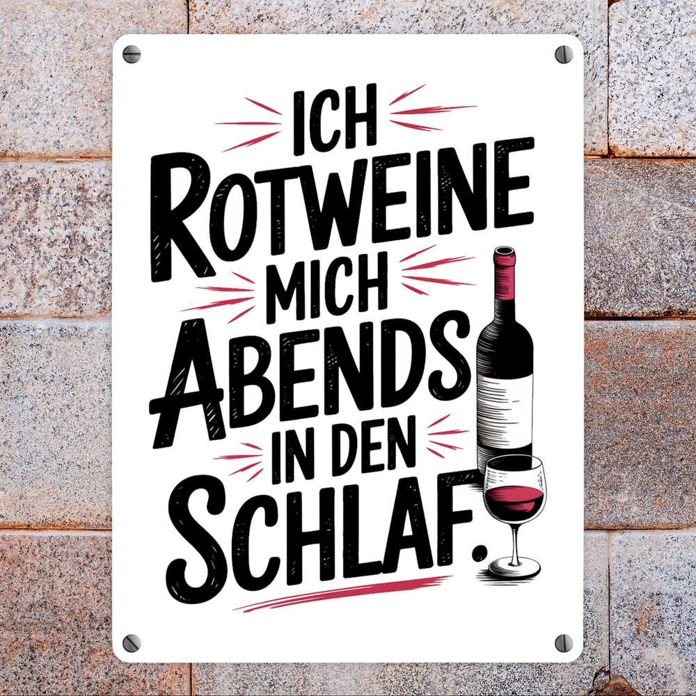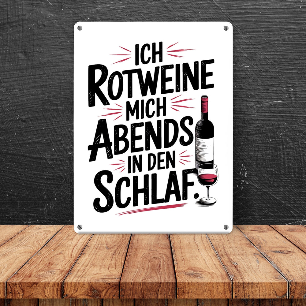 Ich rotweine mich abends in den Schlaf Metallschild in 15x20 cm