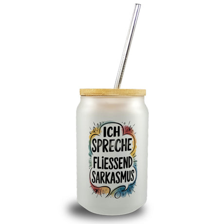 - 1x Ich spreche fließend Sarkasmus Trinkglas mit Bambusdeckel mit Bambusdeckel oder Henkel