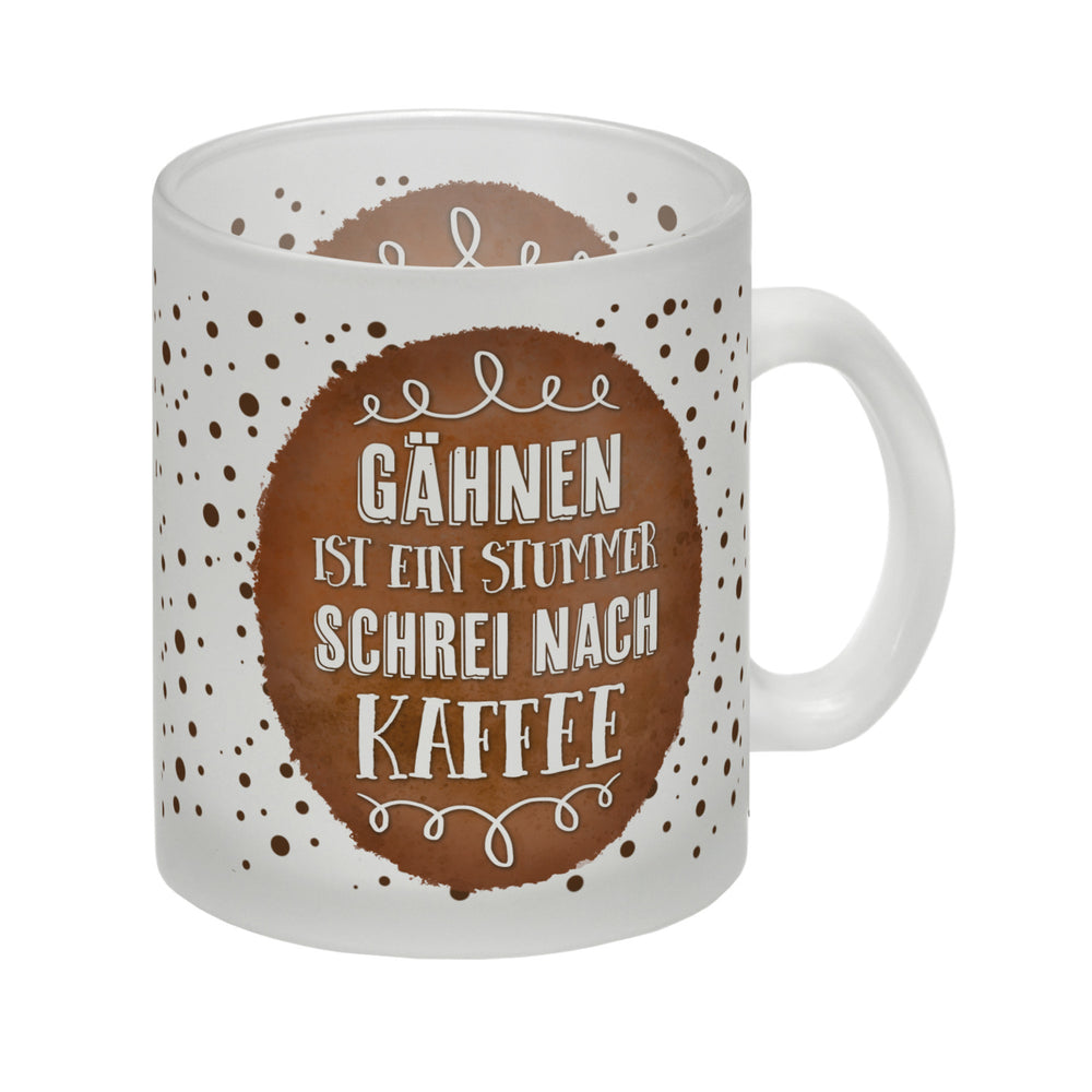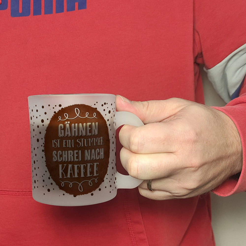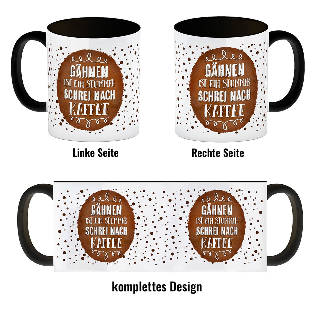 - 1x Kaffeebecher mit Spruch: Gähnen ist ein stummer Schrei nach Kaffee in der gewählten Ausführung
