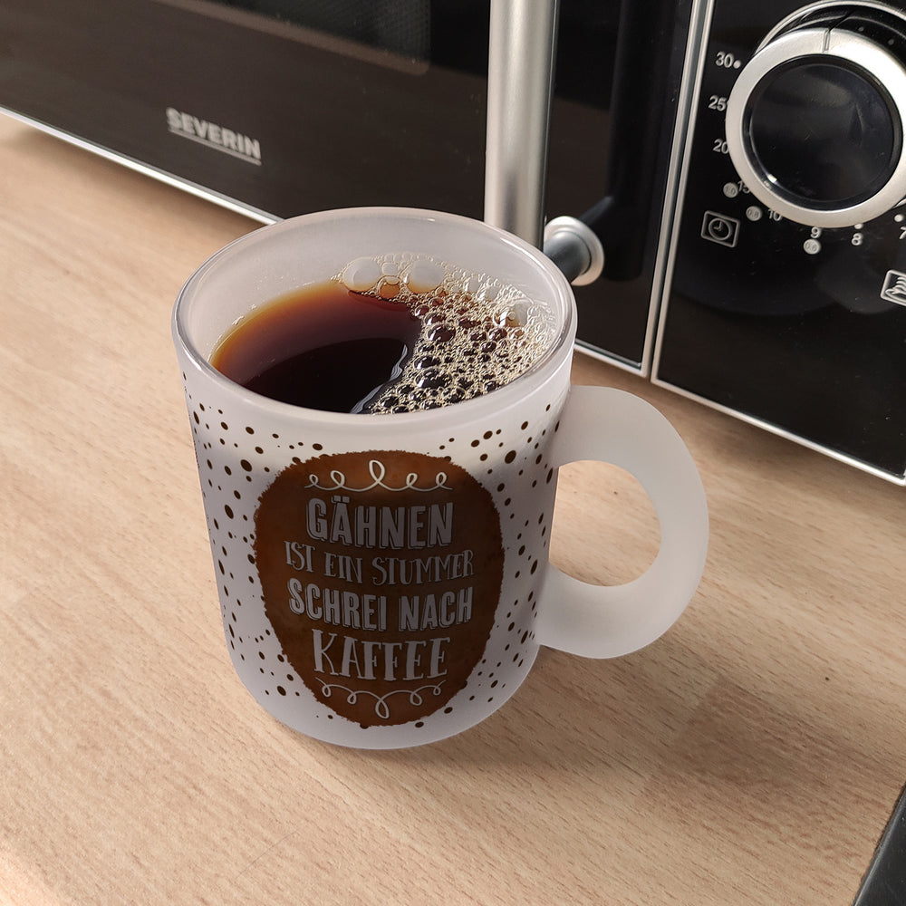 Kaffeebecher mit Spruch: Gähnen ist ein stummer Schrei nach Kaffee