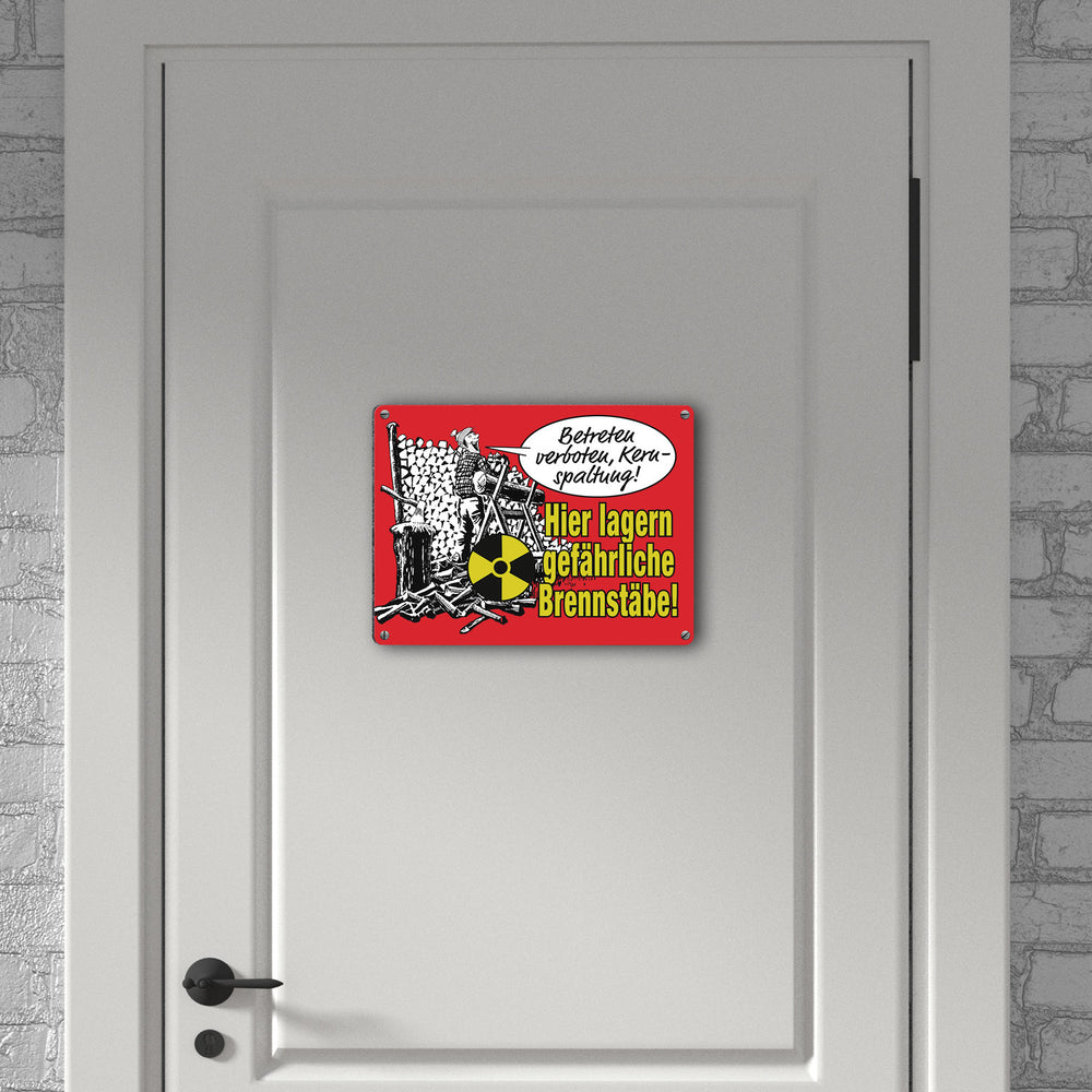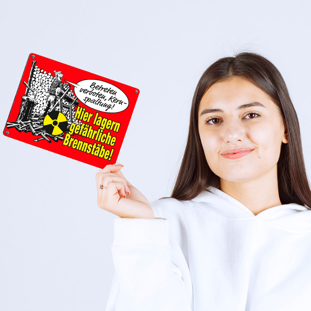 Kernspaltung! Brennstäbe lagern hier Metallschild in 15x20 cm Ironie