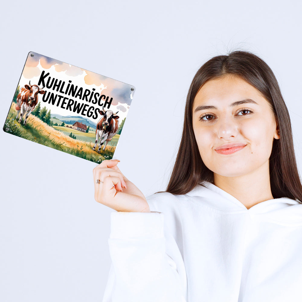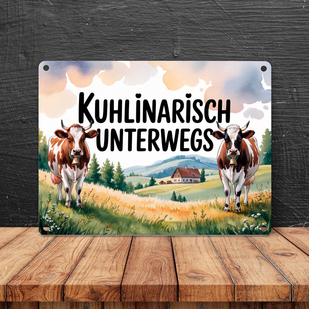 • 1x Kühe auf der Alm Kuhlinarisch Unterwegs Metallschild in 15x20 cm Aquarell in der gewählten Größe