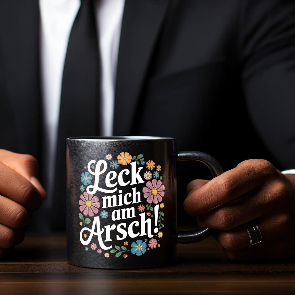 - Starten Sie Ihren Tag mit einem Knaller! Unsere "Leck mich am Arsch" Tasse bringt spritzigen Humor in Ihren Morgen. Die bunte Illustration auf schwarzem Hintergrund garantiert, dass kein Montag so trüb bleibt, wie er klingt. Ideal für den Kaffeejunkie mit einem Faible für freche Statements!