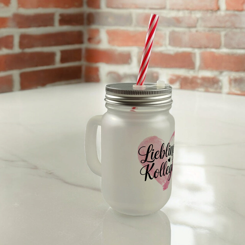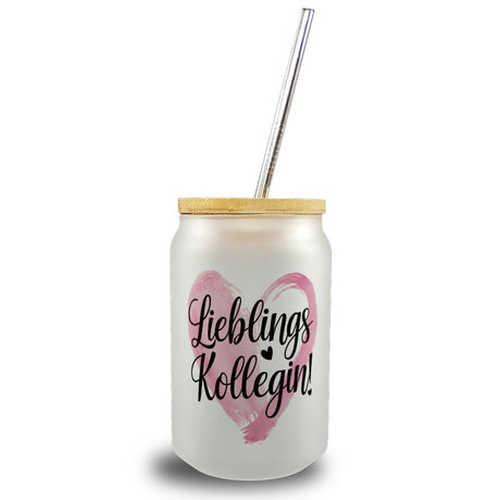 Lieblings Kollegin mit Herz Trinkglas mit Bambusdeckel