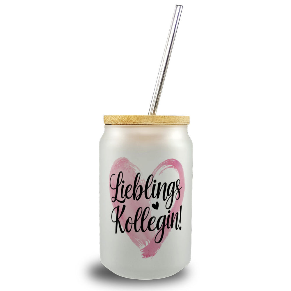 - 1x Lieblings Kollegin mit Herz Trinkglas mit Bambusdeckel mit Bambusdeckel oder Henkel