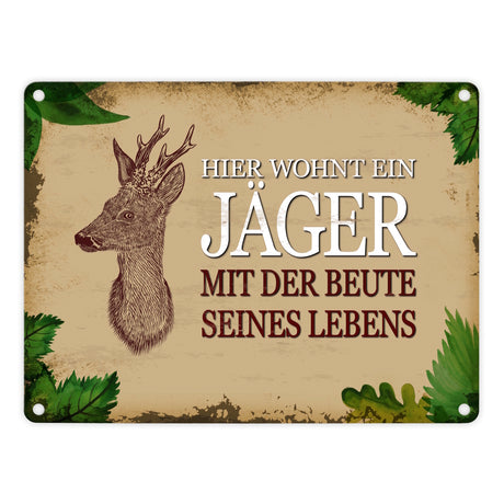 Metallschild mit Spruch: Hier wohnt ein Jäger - mit der ...