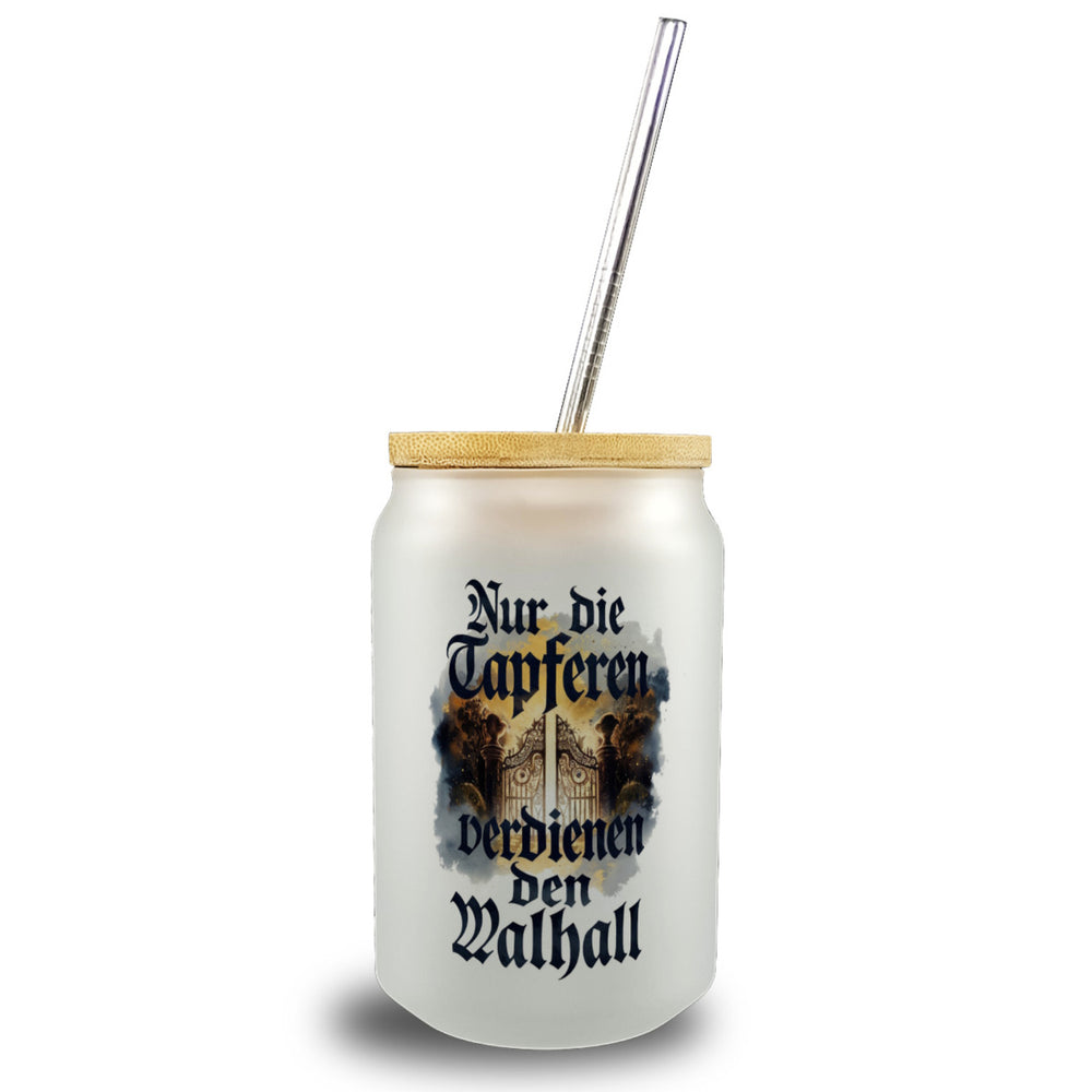 Nur die Tapferen verdienen den Walhall Trinkglas mit Bambusdeckel