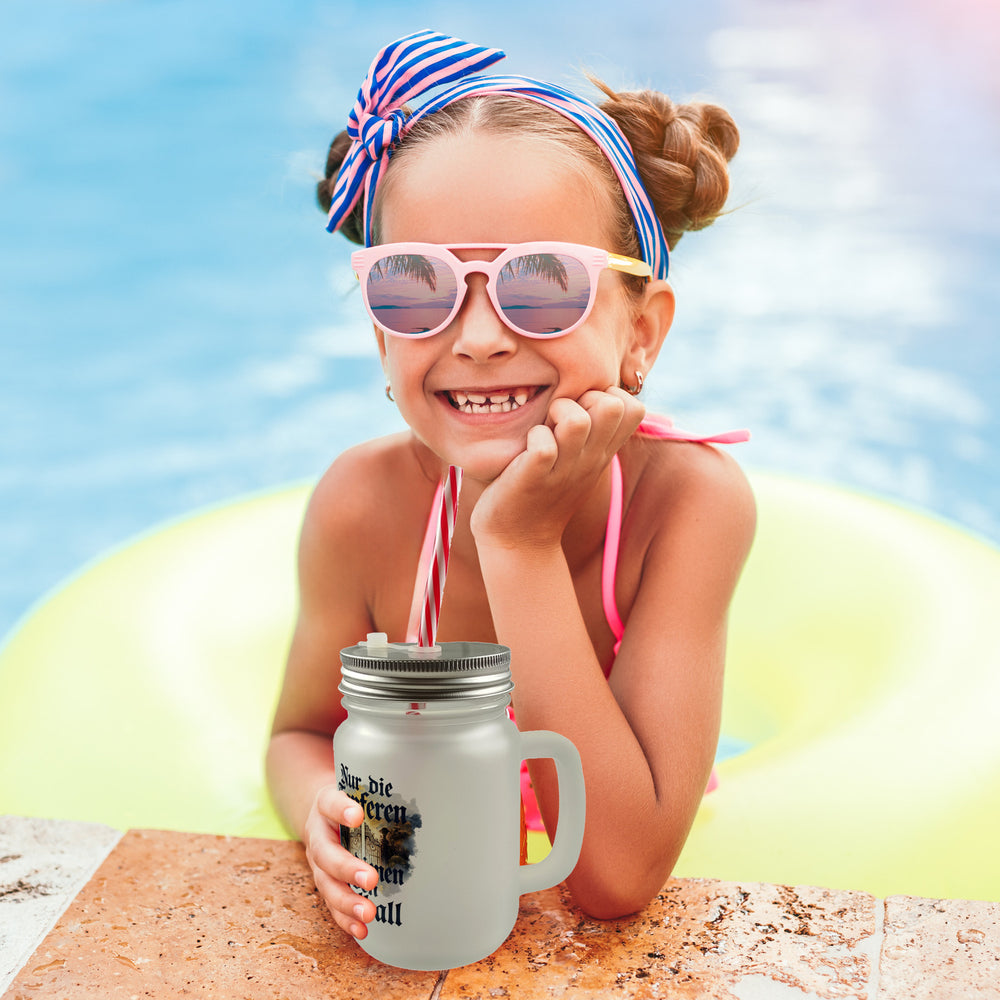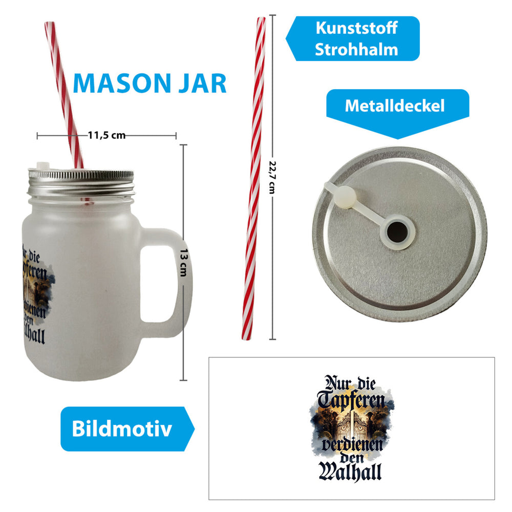 • 1x Nur die Tapferen verdienen den Walhall Trinkglas mit Bambusdeckel mit Bambusdeckel oder Henkel