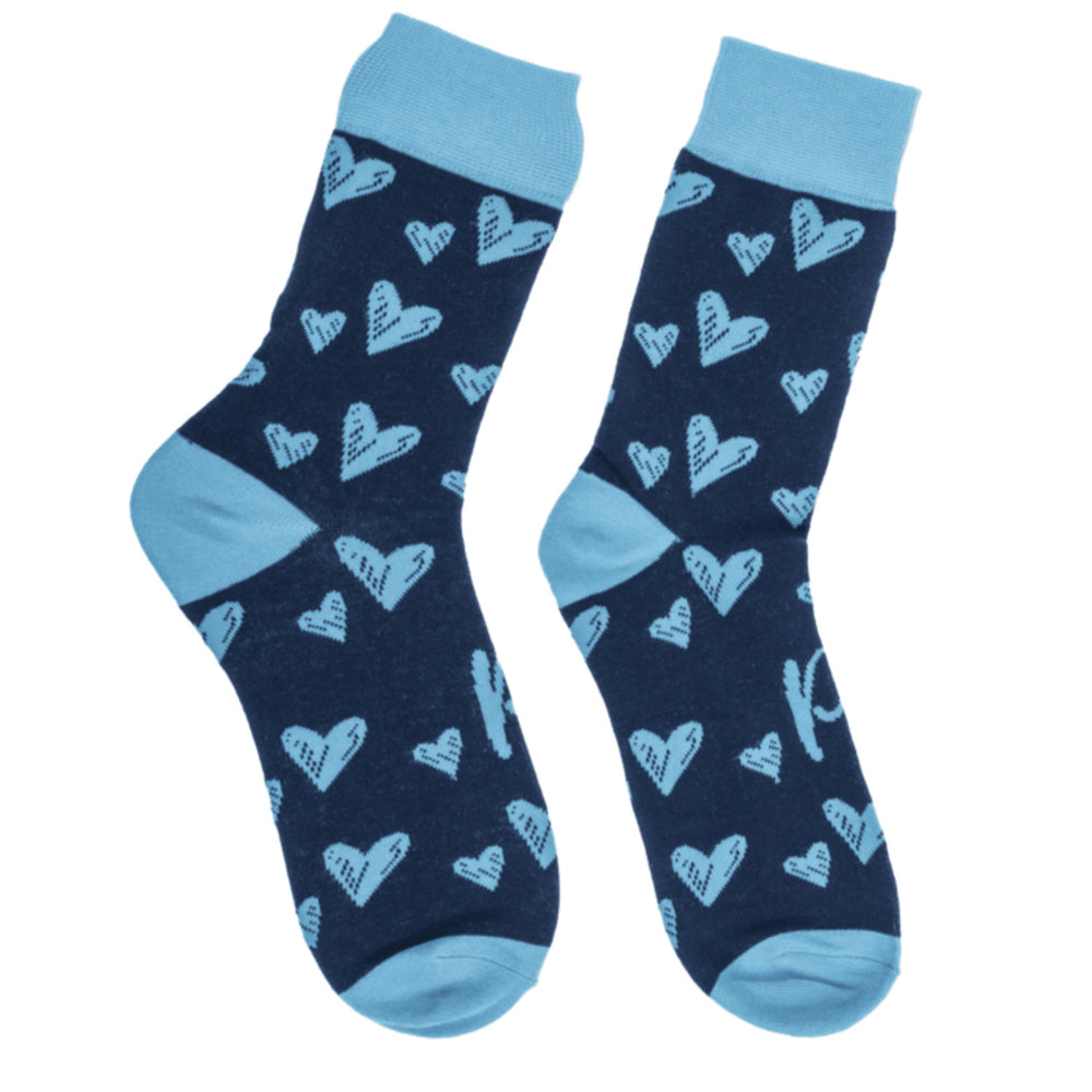 - Diese genialen Socken in den Größen 42-46 sind überwiegend dunkelblau – mit herzerwärmenden hellblauen Details an Bund, Ferse und Spitze. Die eingearbeiteten Herzen sind der perfekte Hingucker und sorgen dafür, dass dein Papa jeden Tag mit einem Lächeln startet. Ein Design, das einfach sockentastisch ist!
