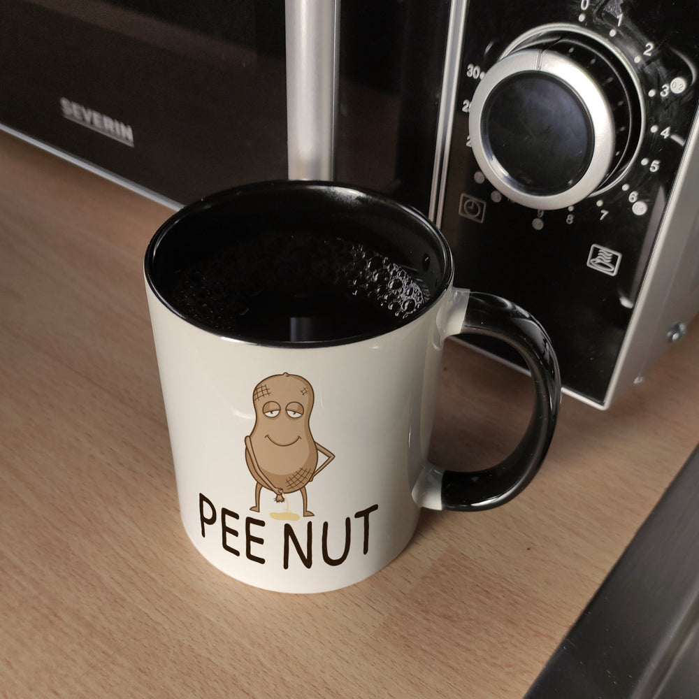 - Du suchst nach einer witzigen und nicht ernst gemeinten Kaffeetasse? Dann ist diese witzige Tasse vielleicht etwas für dich. Die Tasse mit pinkelnder Erdnuss sorgt bestimmt für gute Laune.