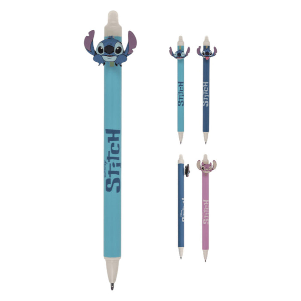 - Jeder dieser lustigen Kulis hat einen kleinen Gummi-Kopf von Stitch, der statt nur zu dekorieren, als Druckknopf dient. Drücke Stitches Schädel und die Kugelschreibermine fährt rein und raus. Ob hellblau, dunkelblau oder pink—Stitch zeigt unterschiedliche witzige Grimassen. Welchen bekommst du? Das bleibt eine Überraschung!