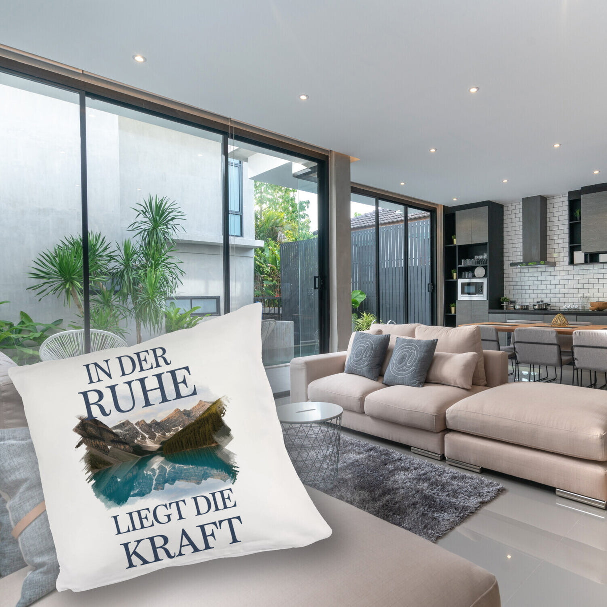 - 1x Ruhe ist Kraft Kissen See und Berglandschlaft in der gewählten Ausführung