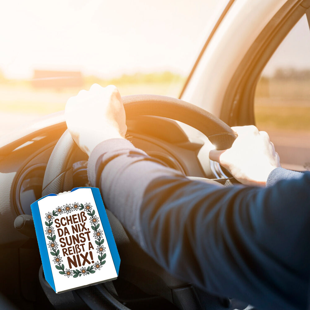 Entdecken Sie die charmante Parkscheibe, die niemanden kalt lässt! Die „Scheiß da nix, sunst reißt a nix!“ Parkscheibe vereint Funktionalität mit österreichischem Witz – und ist ein absolutes Muss für alle, die Humor und Tradition lieben. Mit einem spritzigen Edelweiß-Motiv und einem Spruch, der genau ins Schwarze trifft, ist diese Parkscheibe perfekt, um den Straßenalltag aufzulockern.Hergestellt aus stabilem Kunststoff, inklusive Eiskratzer und zwei cleveren Einkaufswagenchips, liefert sie alles, was man im urbanen Dschungel so braucht. Die lustig bedruckte Rückseite sorgt auch von hinten für ein Schmunzeln. Verabschieden Sie sich von tristen Parkscheiben und zeigen Sie augenzwinkernd, dass Sie selbst bei kleinen Missgeschicken Ihre Gelassenheit behalten.Diese Parkscheibe eignet sich hervorragend als Geschenk für Geburtstage, Weihnachten oder als spontane Überraschung für alle, die Spaß am Autofahren haben. Und das Beste? Sie erfüllt die Anforderungen nach StVO! Ob in der Stadt oder auf dem Land – diese Parkscheibe bringt den frischen Wind der Alpen direkt in Ihre Fahrzeugkabine. Greifen Sie zu und erleben Sie österreichischen Charme in Ihrem Auto! Ein Stück Humor, ein Hauch Tradition – jetzt bestellen und Freude verschenken!