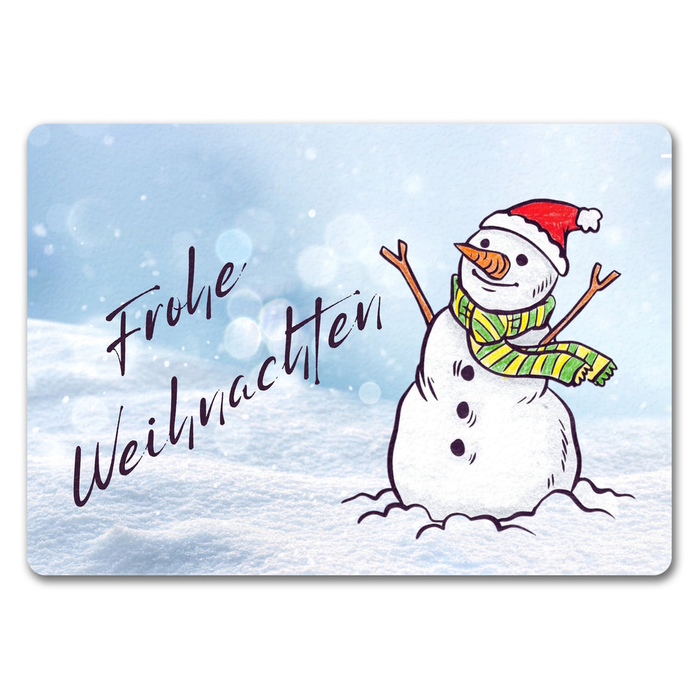 - 1x Schneemann mit Mütze Fußmatte in 35x50 cm mit Spruch Frohe Weihnachten in der gewählten Größe
