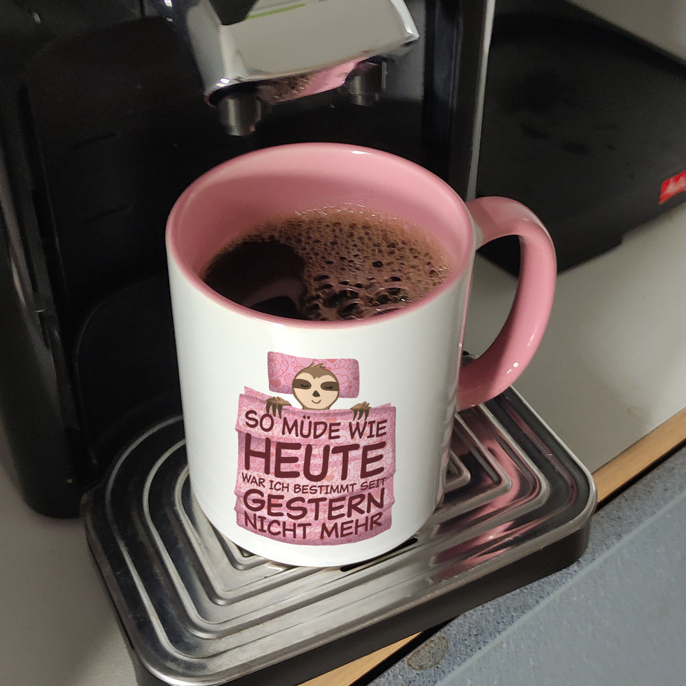 • 1x So müde wie heute war ich seit gestern nicht mehr Faultier Kaffeebecher in der gewählten Ausführung