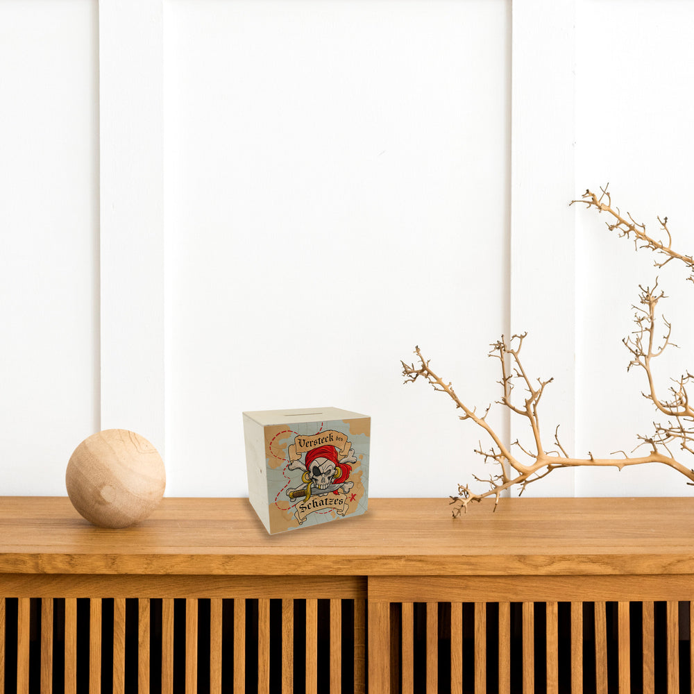Spardose für Kinder mit Schatzkarte und Totenkopf - Versteck des Schatzes