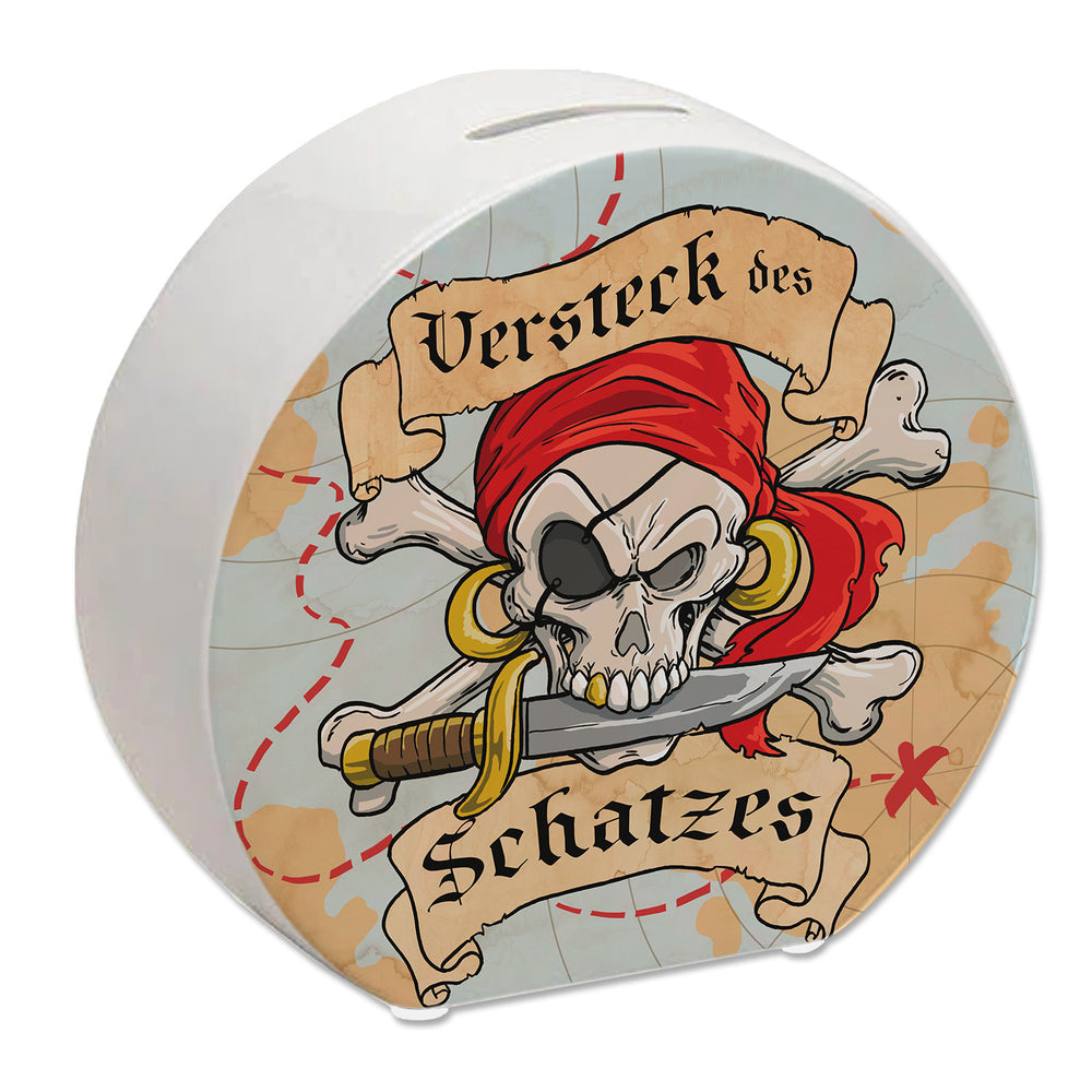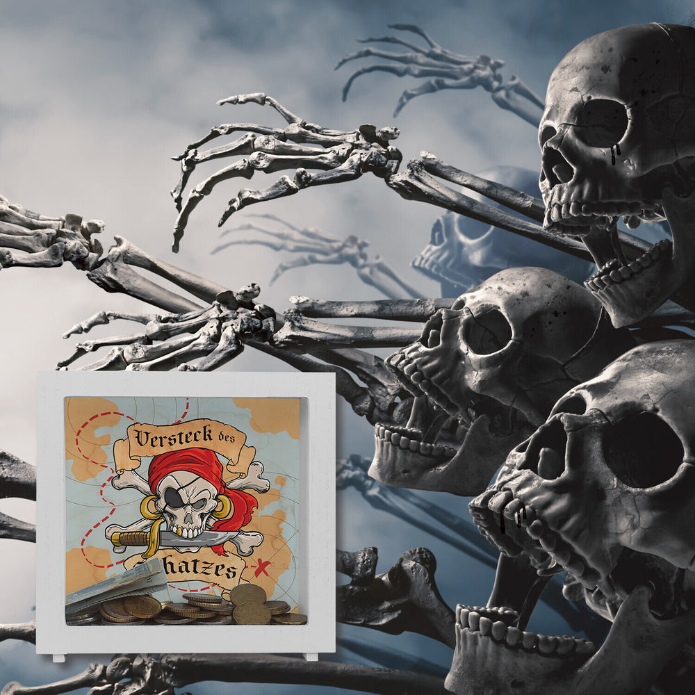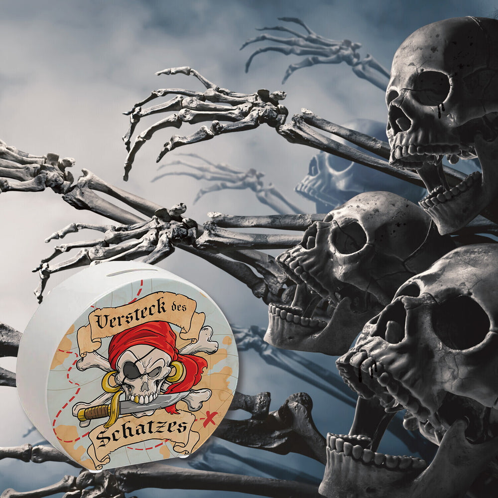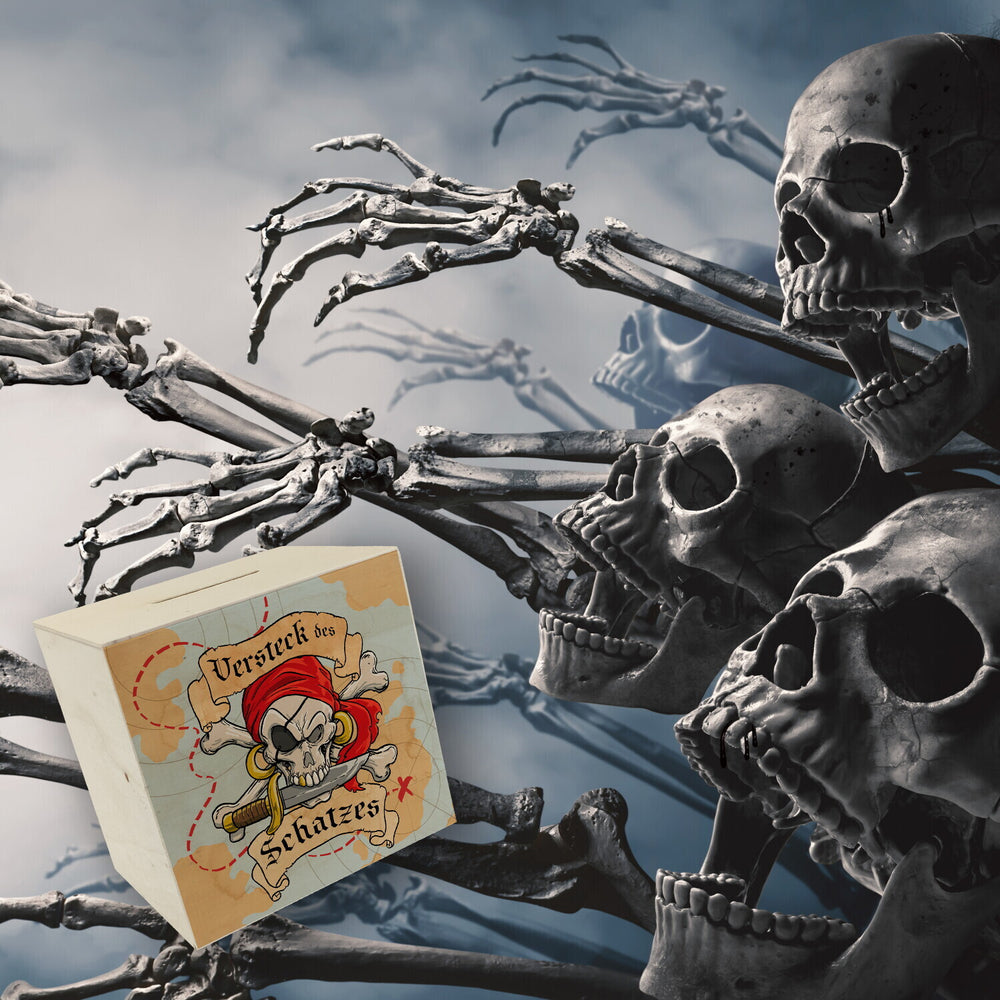 - 1x Spardose für Kinder mit Schatzkarte und Totenkopf - Versteck des Schatzes in der gewählten Ausführung