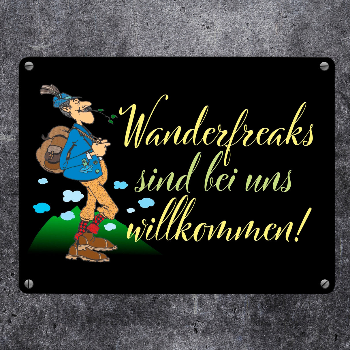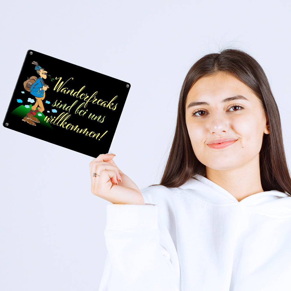 Wanderfreaks sind bei uns willkommen Metallschild in 15x20 cm