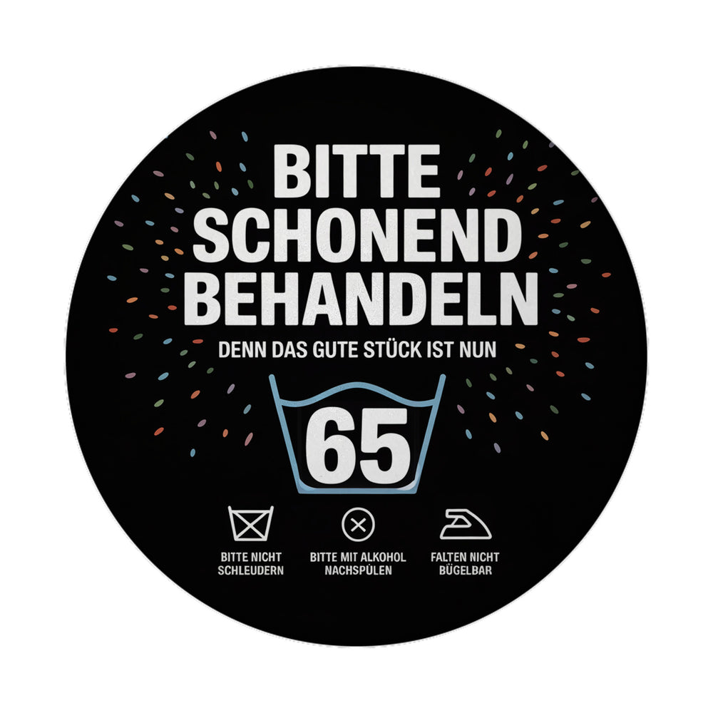 - Dieses lustige und stilvolle Magnet-Design zieht mit seinem schwarzen Hintergrund und dem auffälligen, weißen Text 'BITTE SCHONEND BEHANDLEN' alle Blicke an. Die kreative Gestaltung mit einem blauen Waschmaschinensymbol und bunten Konfetti-Elementen macht ihn zu einem echten Hingucker.