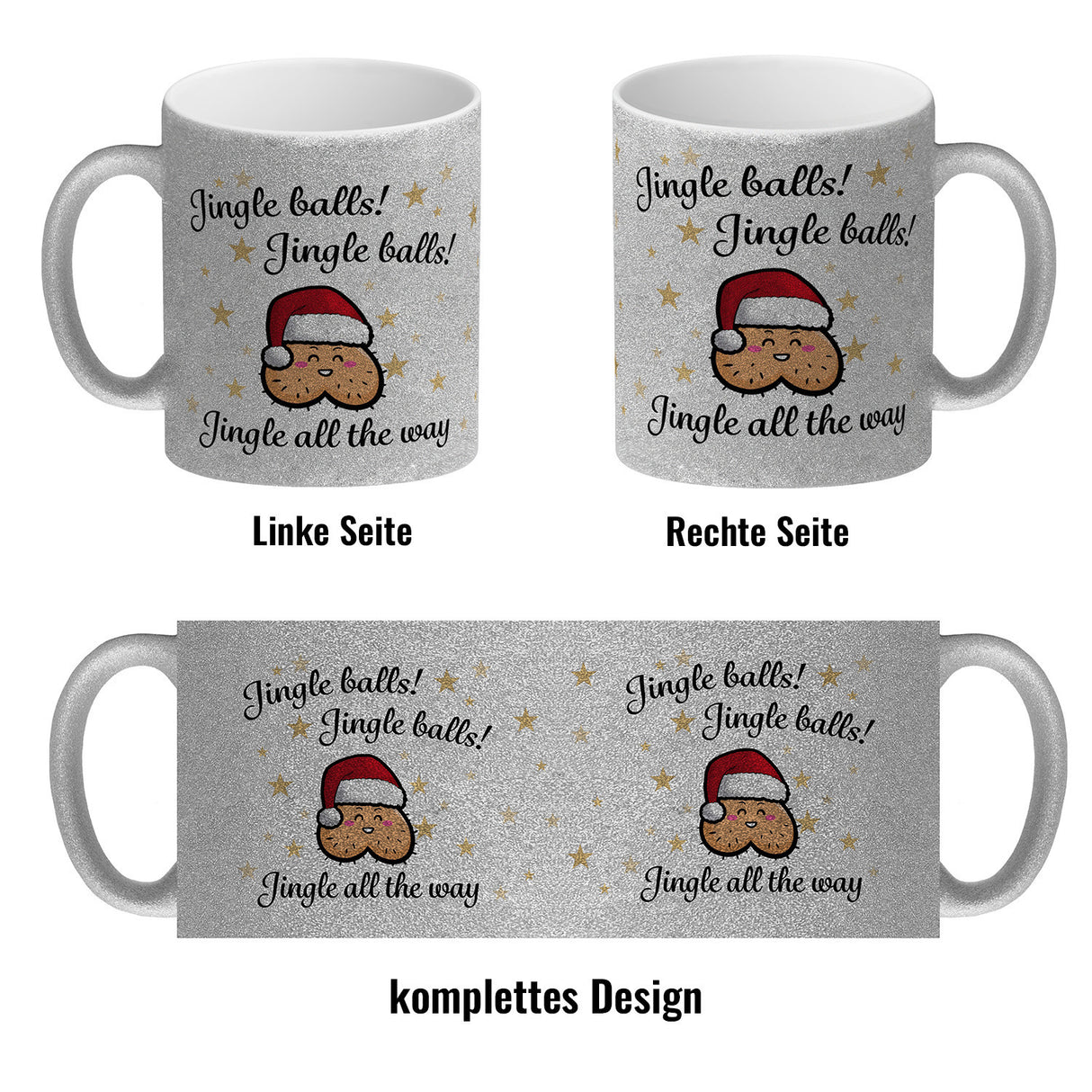 Schenken Sie doch einmal etwas anderes als die übliche Tasse für Kaffee, Tee oder heiße Schokolade! Mit dem witzigen Weihnachts-Hoden Kaffeebecher mit Weihnachtssong Jingle balls bringen Sie jeden zum Schmunzeln. Der Becher ist mit einem niedlichen, weihnachtlich geschmückten Hoden und goldenen Sternen im Hintergrund gestaltet und sorgt für gute Laune. Erhältlich in verschiedenen Ausführungen, wie weißer Standardtasse, mit farbigem Henkel und Innenseite, als Glastasse oder in der exklusiven Silberedition mit Glitzereffekt. Mit seinem Fassungsvermögen von ca. 300ml ist er perfekt, um Ihren Lieblingsgetränk zu halten und dank seiner Spülmaschinenfestigkeit auch leicht zu reinigen. Dieser Kaffeebecher ist ideal zum Männer Wichteln im Büro oder unter Freunden und verspricht eine humorvolle Weihnachtszeit. Stellen Sie sich vor, wie Ihr Gegenüber beim Anblick des Hodens lacht - das wird garantiert ein schönes Erlebnis sein! Überraschen Sie Ihre Liebsten mit dem Weihnachts-Hoden Kaffeebecher und schenken Sie Freude und Humor!