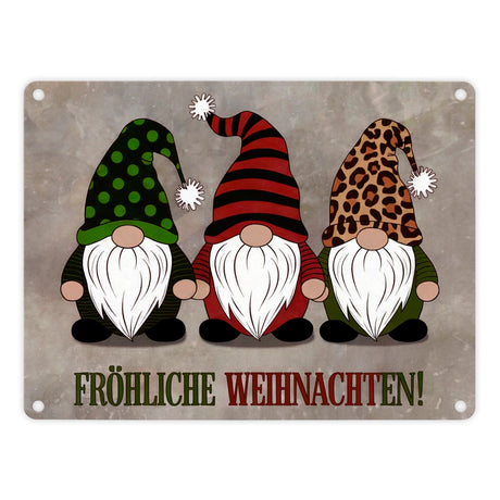 Drei Wichtel - Fröhliche Weihnachten Metallschild in 15x20 cm