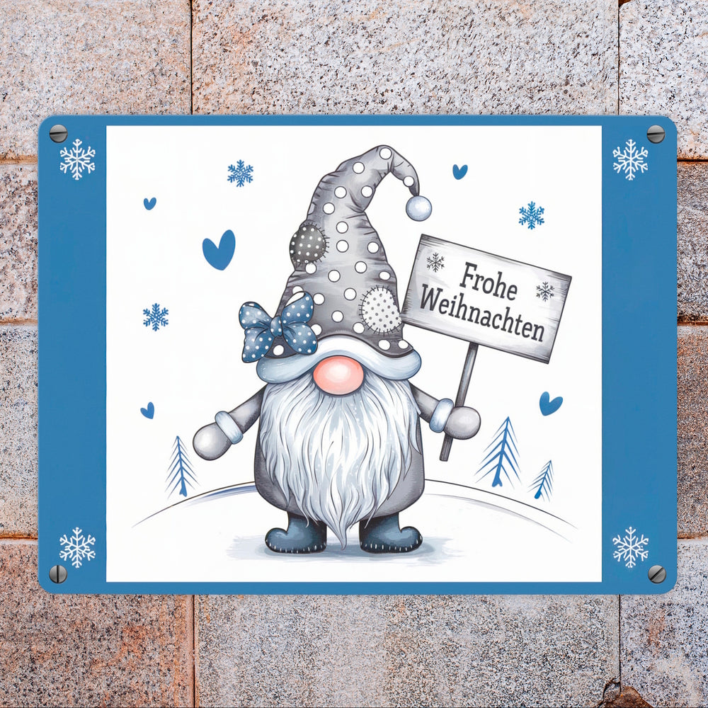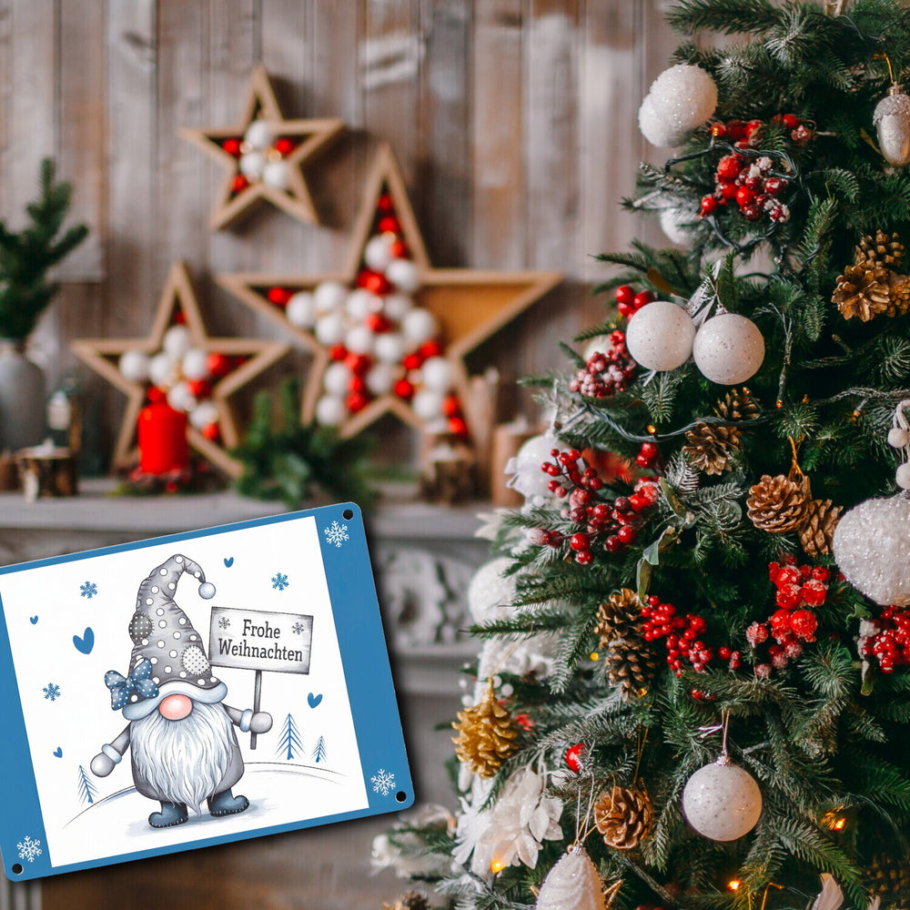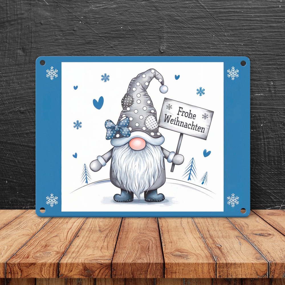 - 1x Weihnachtswichtel Metallschild in 15x20 cm - Frohe Weihnachten in der gewählten Größe