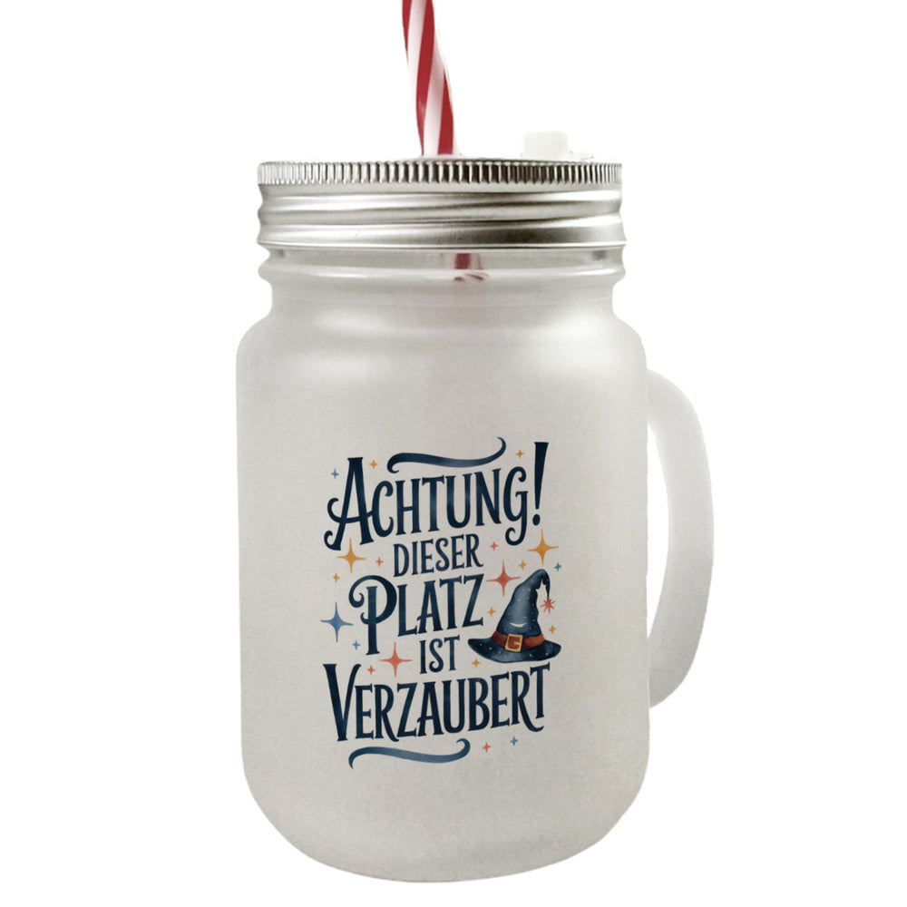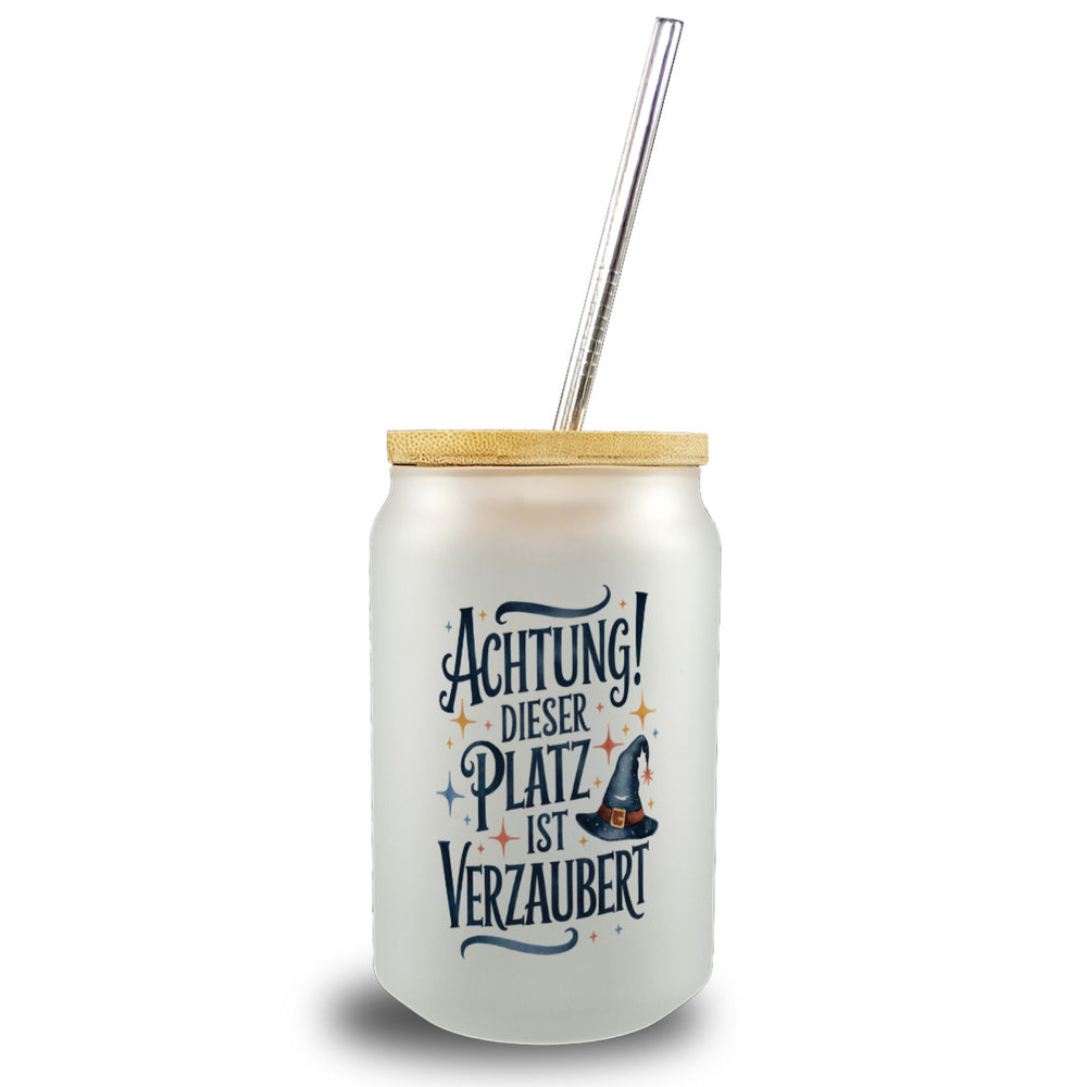 - 1x Zaubererhut Achtung Platz verzaubert Trinkglas mit Bambusdeckel mit Bambusdeckel oder Henkel