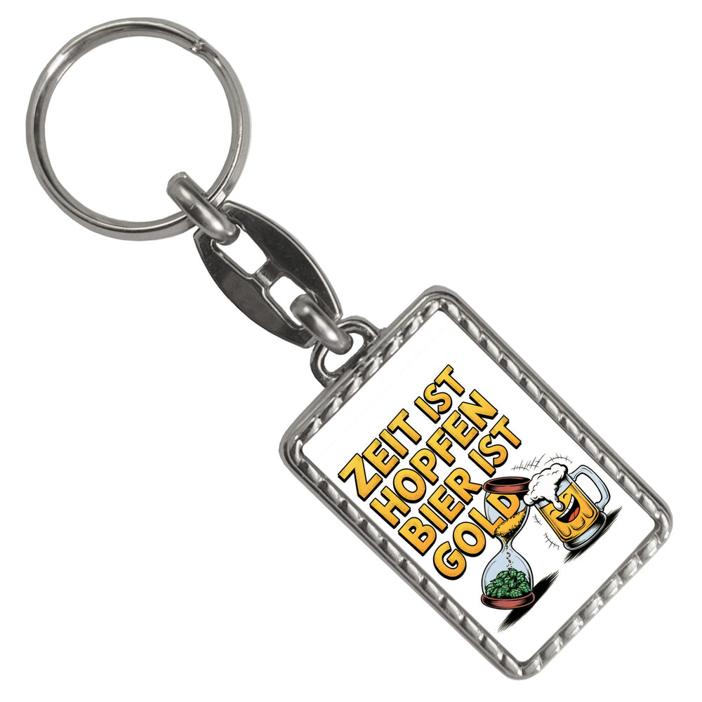 - Der Schlüsselanhänger "Zeit ist Hopfen, Bier ist Gold" präsentiert ein witziges Design. Ein fröhlicher Bierkrug mit einem lachenden Gesicht und eine neigende Sanduhr voller Hopfenzapfen zieren den Anhänger. Der Spruch in großen gelben Buchstaben sorgt für Schmunzeln auf weißem Hintergrund. Perfekt für alle, die Bier lieben!