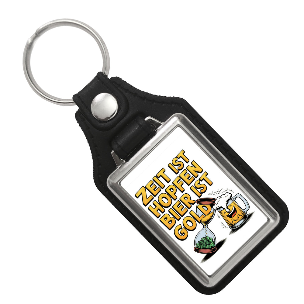 Zeit ist Hopfen, Bier ist Gold Schlüsselanhänger Bierkrug & Sanduhr