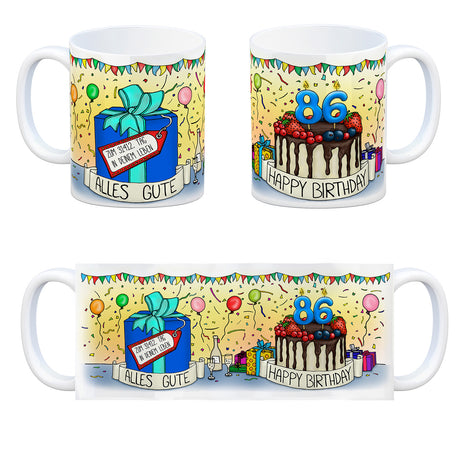 €6,95Grundpreis /Nicht verfügbarAuf Lager86. Geburtstag Tasse mit Kuchen und Geschenk und Anhänger: zum 31412. Tag