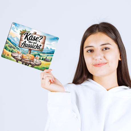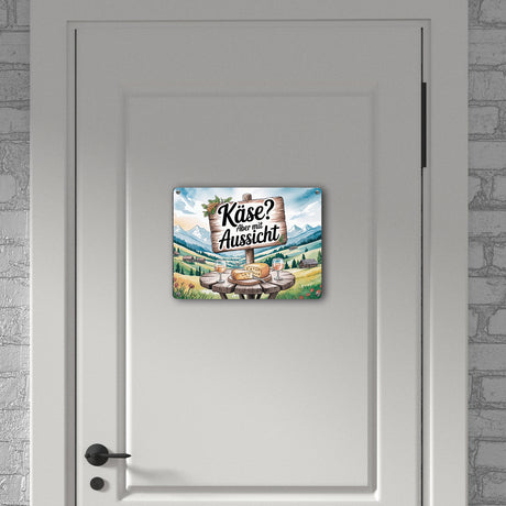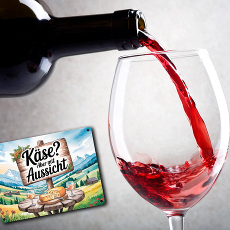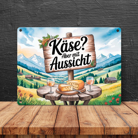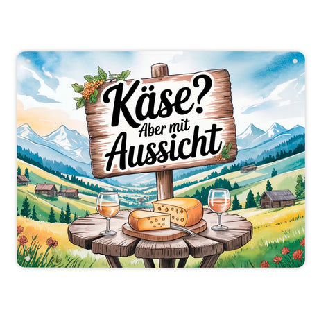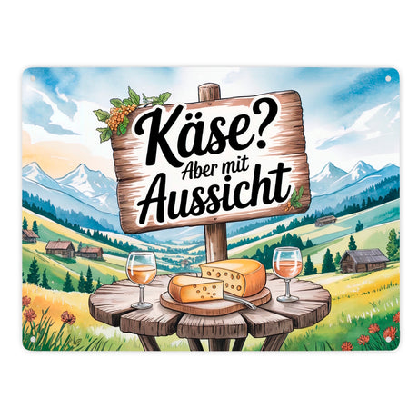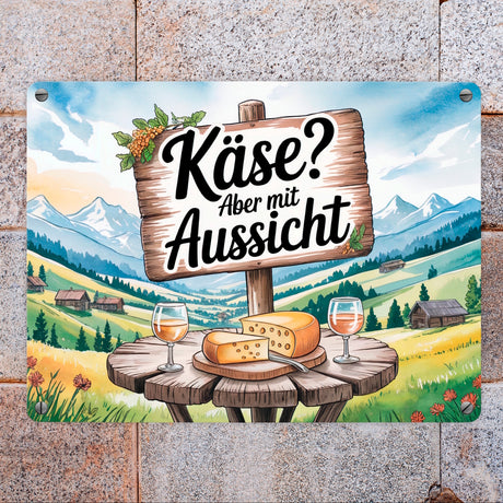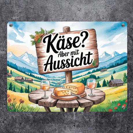 Ab €8,95Grundpreis /Nicht verfügbarAuf LagerKäse mit Aussicht Berglandschaft Metallschild in 15x20 cm mit Käse und Wein