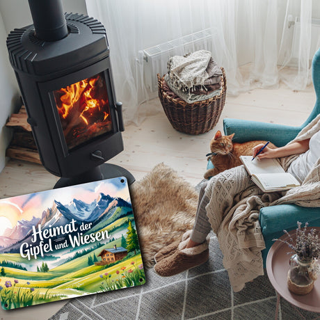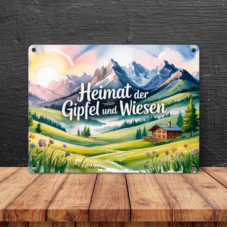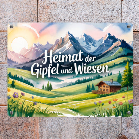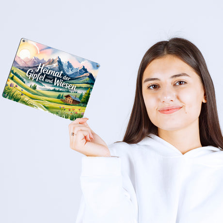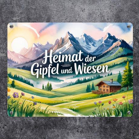 Ab €8,95Grundpreis /Nicht verfügbarAuf LagerAquarell Allgäu Landschaft Hier bin i Metallschild in 15x20 cm