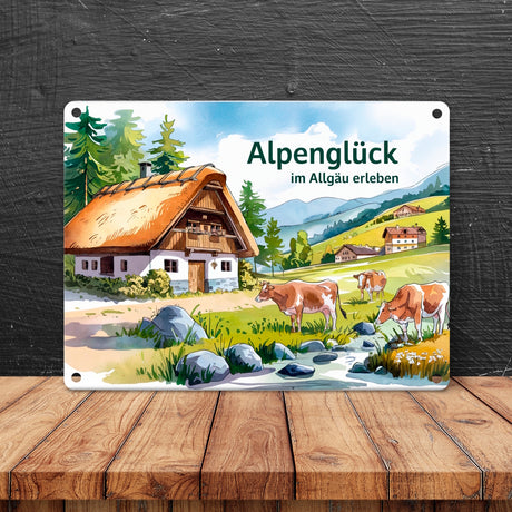 Ab €8,95Grundpreis /Nicht verfügbarAuf LagerAlpenglück in den Bergen Metallschild in 15x20 cm Landhaus mit Kühen