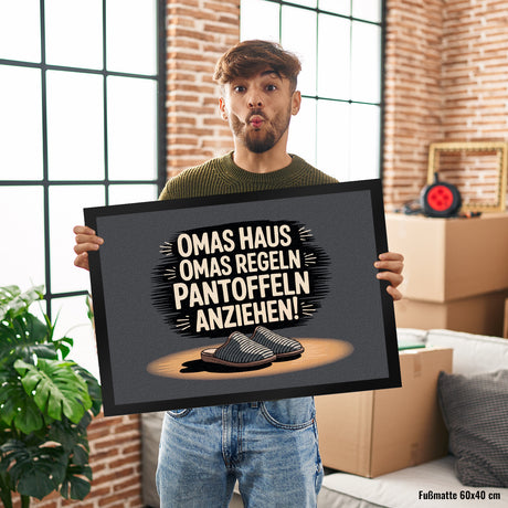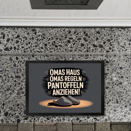 Ab €6,95Grundpreis /Nicht verfügbarAuf LagerOmas Haus, Omas Regeln Pantoffeln anziehen im Vintage-Stil Fußmatte in 35x50 cm