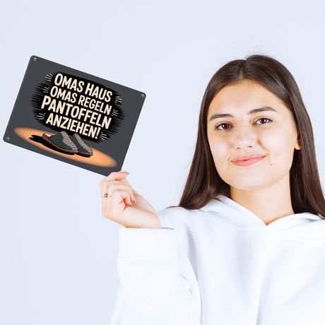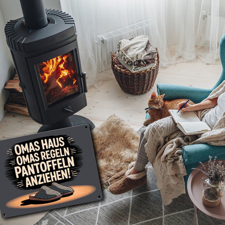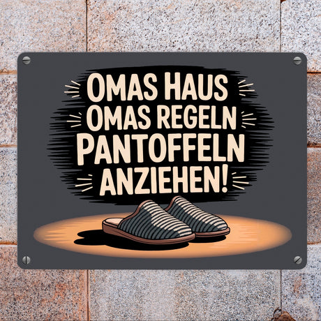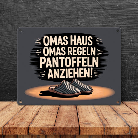 Ab €8,95Grundpreis /Nicht verfügbarAuf LagerOmas Haus, Omas Regeln Pantoffeln anziehen im Vintage-Stil Metallschild in 15x20 cm
