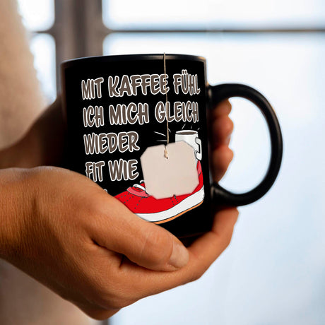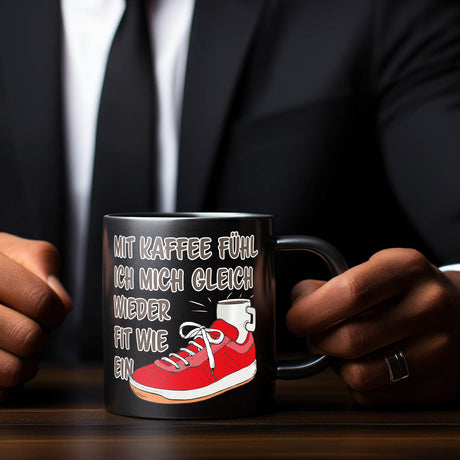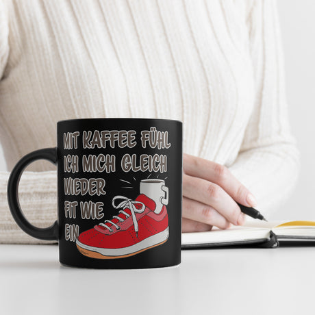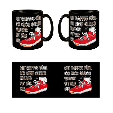 Mit Kaffee fühl ich mich gleich wieder fit wie ein Turnschuh Tasse