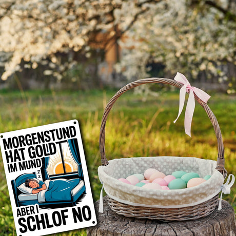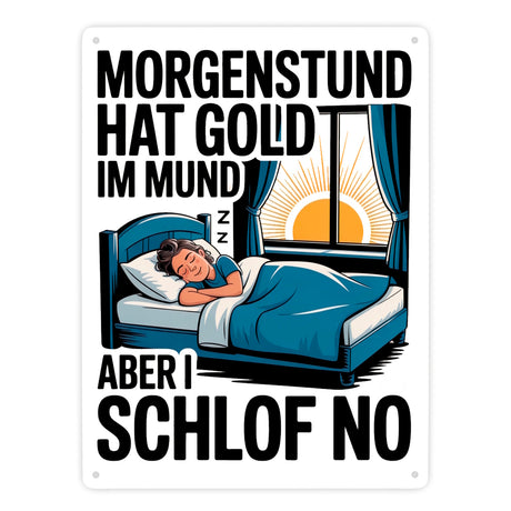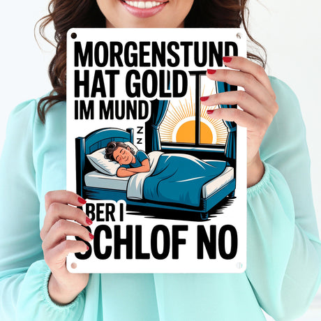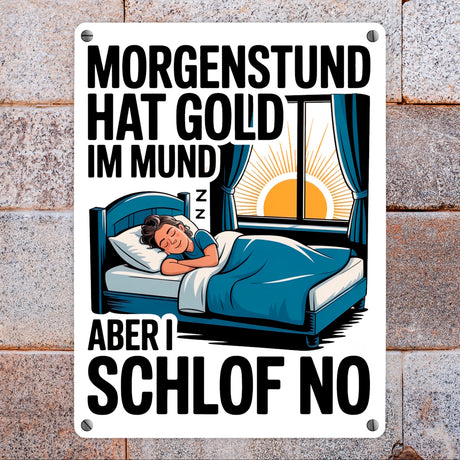 - Morgenstund hat Gold im Mund, I schlof no Metallschild in 15x20 cm Schlafende Person Ab €8,95Grundpreis /Nicht verfügbarAuf Lager