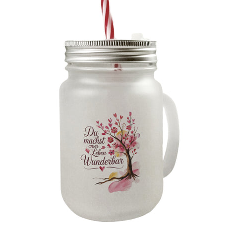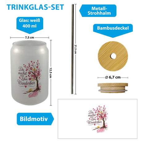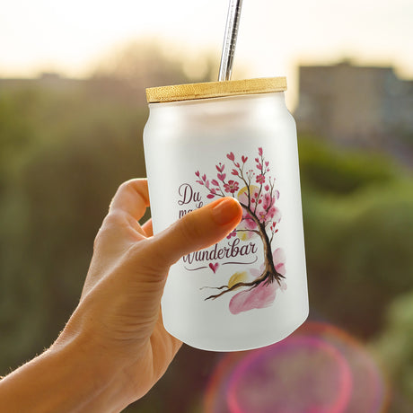 - Du machst unser Leben wunderbar Trinkglas mit Bambusdeckel Baum mit Blumen €9,95Grundpreis /Nicht verfügbarAuf Lager