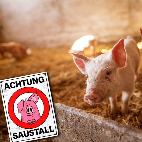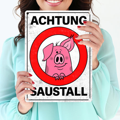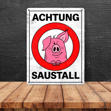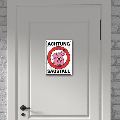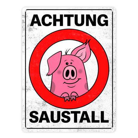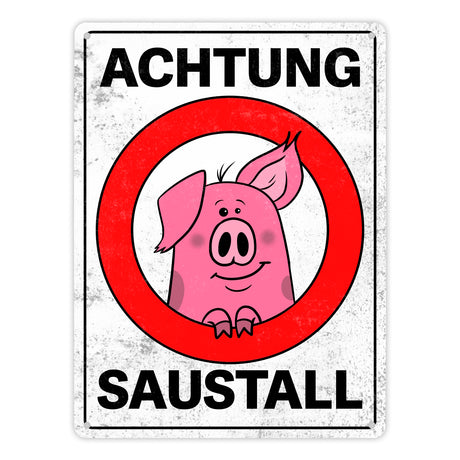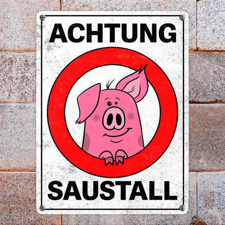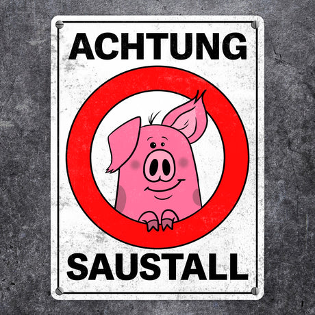 Ab €6,95Grundpreis /Nicht verfügbarAuf LagerAchtung Saustall Metallschild mit lustigem Comic-Schwein in einem Warnkreis
