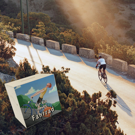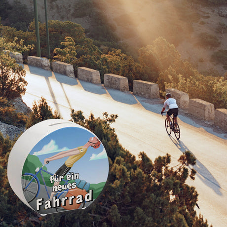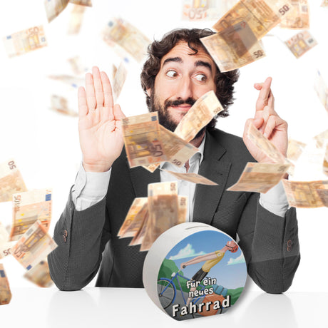 Ab €6,95Grundpreis /Nicht verfügbarAuf LagerSpardose mit lustigem Fahrradfahrer und Text - Für ein neues Fahrrad
