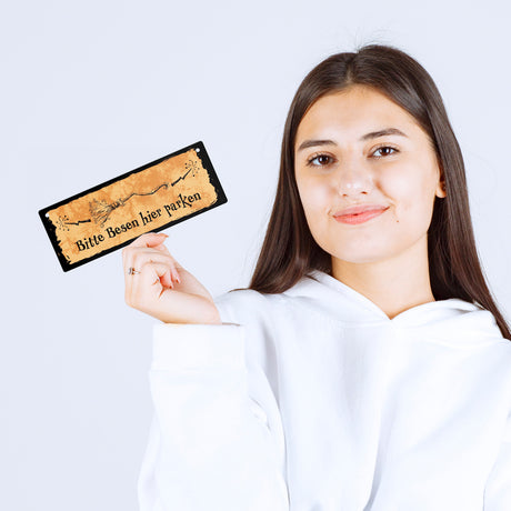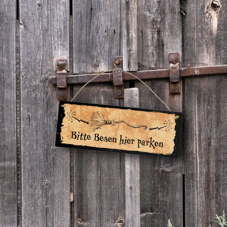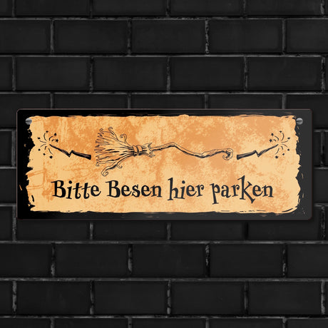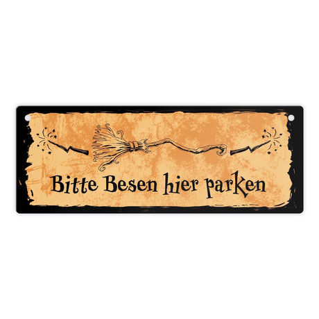 €8,95Grundpreis /Nicht verfügbarAuf LagerMetallschild für Hexen mit Besen-Motiv und Spruch - Bitte Besen hier parken