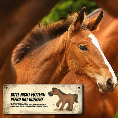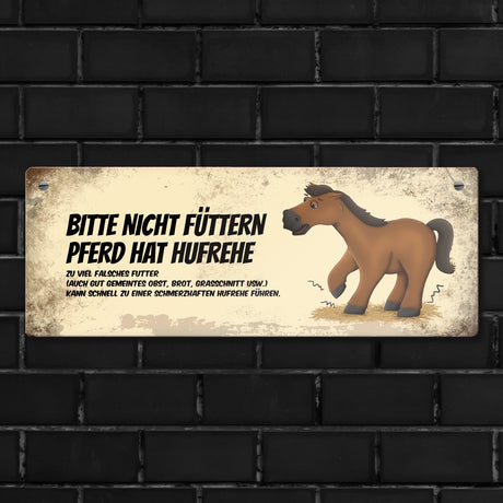 Ab €6,95Grundpreis /Nicht verfügbarAuf LagerMetallschild mit braunem Pferd Motiv und Spruch: Bitte nicht füttern - Hufrehe