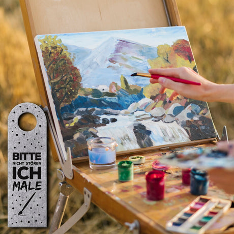 Ab €6,95Grundpreis /Nicht verfügbarAuf LagerBitte nicht stören, ich male oder Komm rein Türhänger mit Pinsel Motiv