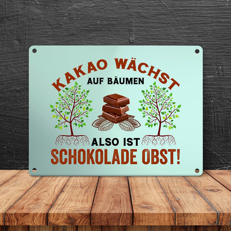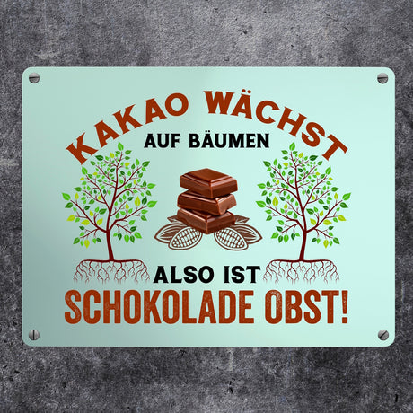 Ab €12,95Grundpreis /Nicht verfügbarAuf LagerKakao Metallschild in 15x20 cm mit Spruch Schokolade ist Obst