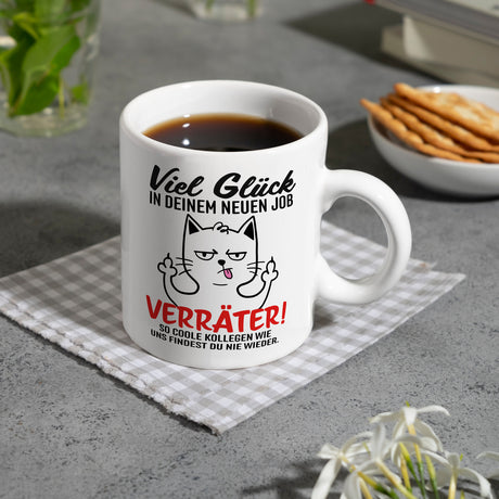 Ab €6,95Grundpreis /Nicht verfügbarAuf LagerViel Glück im neuen Job Verräter Mittelfinger Kaffeebecher mit frecher Katze