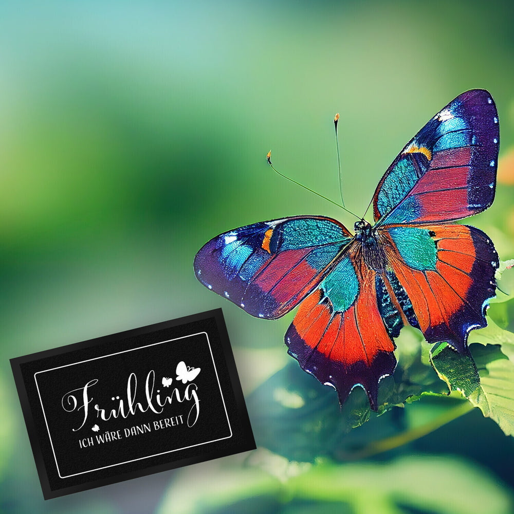 - 1x Frühling ich wäre dann bereit Fußmatte mit Schmetterlingen in der gewählten Größe
