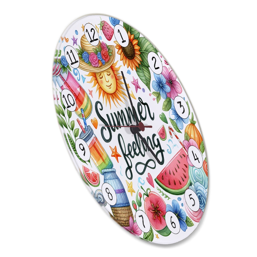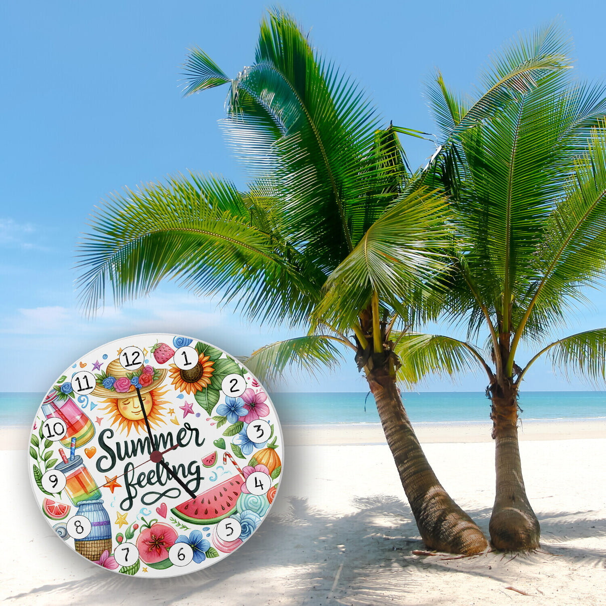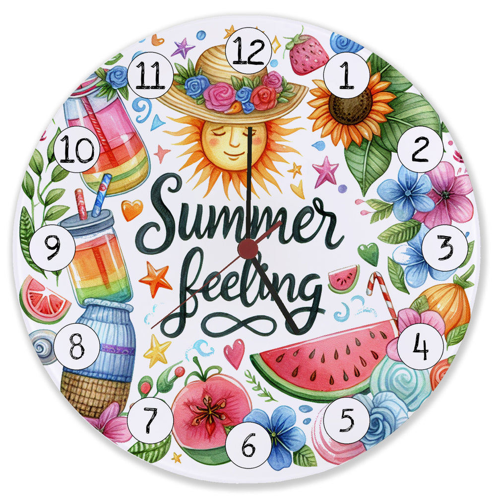 Sonne und Sommer Wanduhr mit Spruch Summer feeling